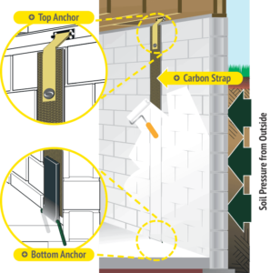 Carbon fiber is commonly used to reinforce bowing or cracked foundation walls. The process involves applying carbon fiber straps directly to the affected areas of the wall. These straps are bonded to the surface using a high-strength epoxy. Once in place, they act as a reinforcement system, preventing further movement or damage.